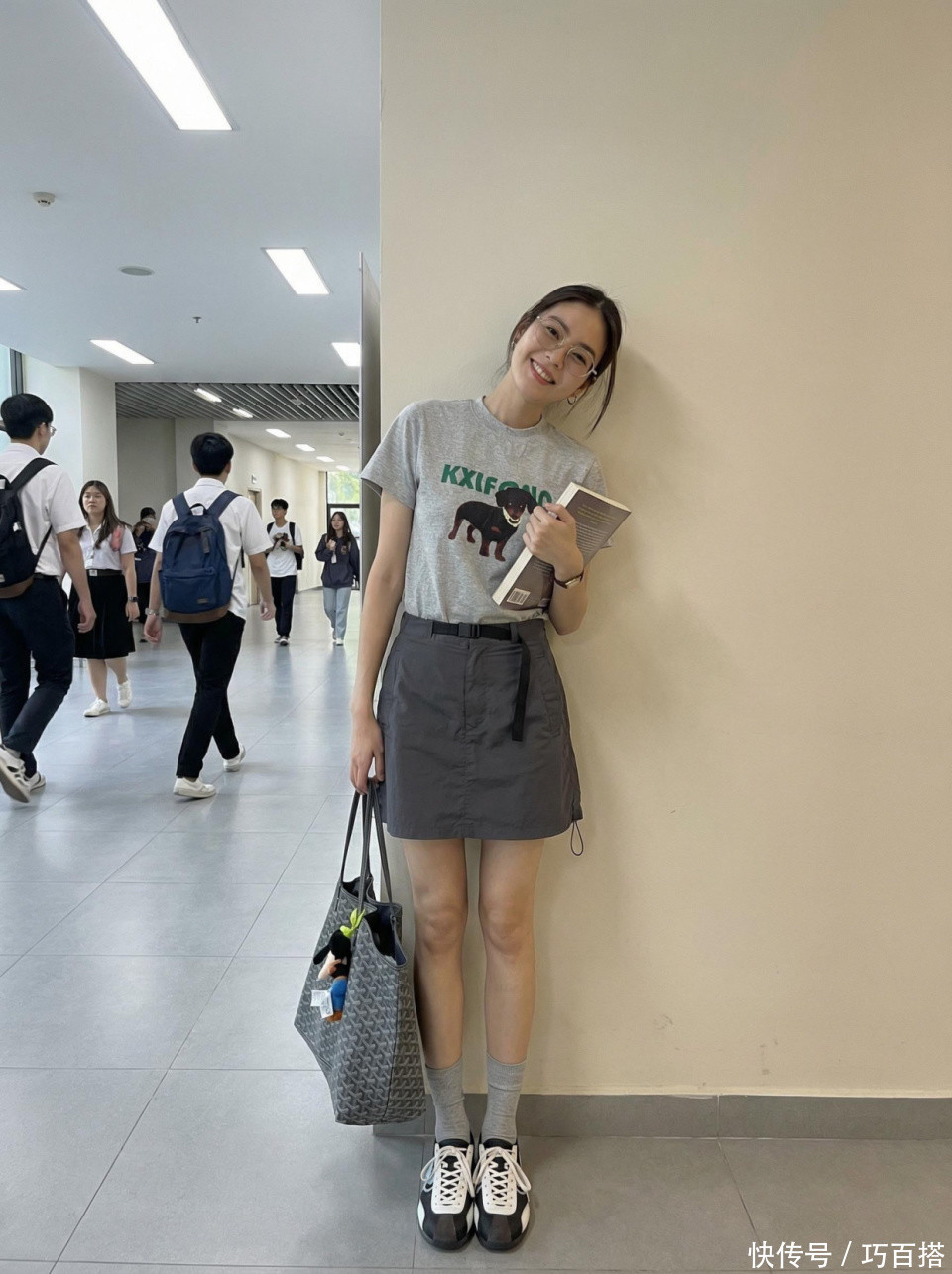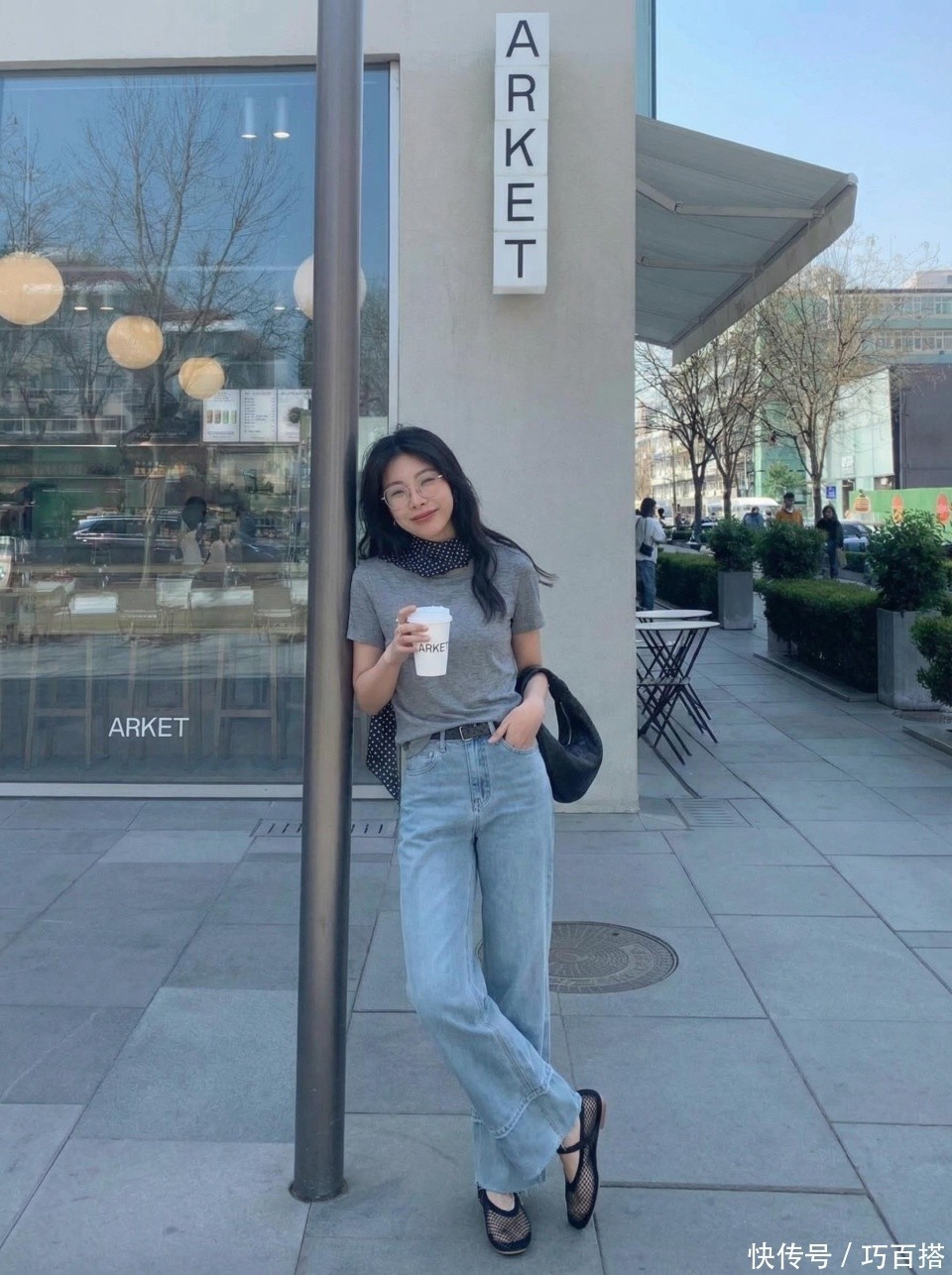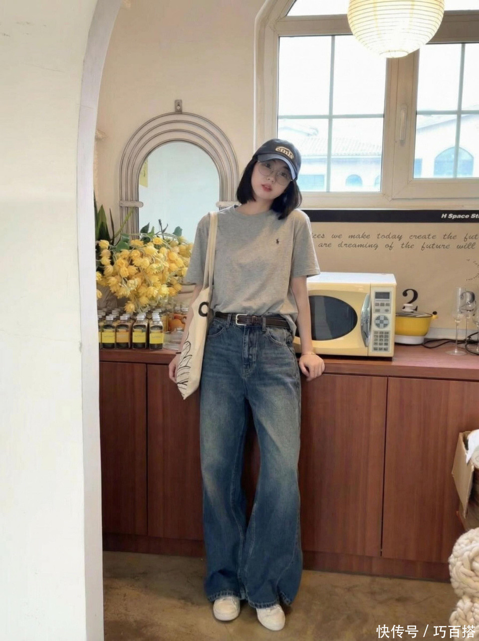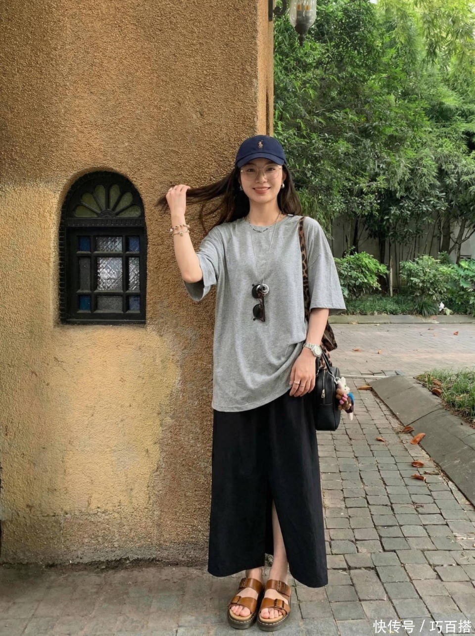 其次,大家也可以像博主一样选择常规宽松度的修身款灰色T恤,有一定空间感但又不会绝对宽松,松弛有度,非常修饰身材。肩颈、手臂有拜拜肉、有小肚腩的姐妹都可以选择。